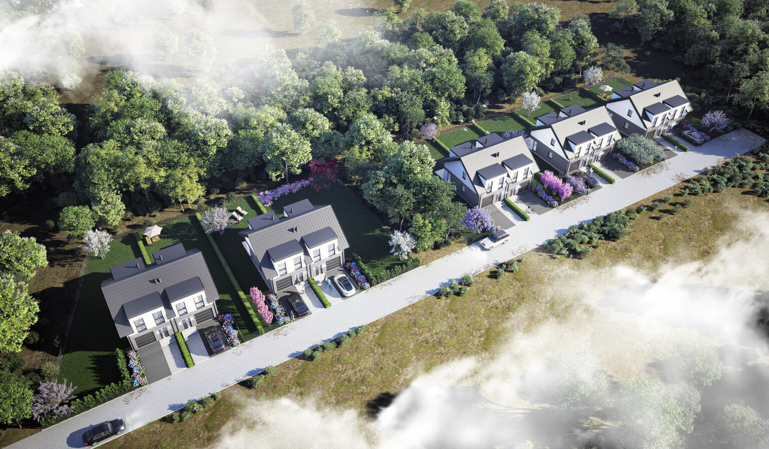 Dostępnych będzie 10 niezależnych nieruchomości, każdy szczęśliwy nabywca wraz z domem nabędzie działkę o powierzchni 300 m2 – 500 m2.